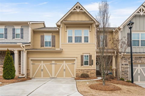 Massive price reduction!! Priced below appraised value. This beautiful gated like new townhome is nestled in the highly sought-after City of Peachtree Corners. It is within walking distance to the Forum Mall, new Town Center, Johns Bridge, & Simpson Wood Park by the Chattahoochee river. The beautiful new townhome boasts over 2,300 sqft making it one of the largest in the community. It features a 12x20 finished bonus room on the upper level that is currently used as a home gym but could be another home office, craft room, media room, or storage room. This home has tons of natural light! The main level features an open floor plan perfect for entertaining. The kitchen is very spacious and features a large island with granite countertops, subway tiles, and stainless steel appliances. Beautiful built-ins and hardwood floors in the living room lead out to the newly renovated back deck with Trex flooring that overlooks your backyard! Upstairs features a massive loft office/second family room with 2 generous-sized bedrooms and a guest bathroom. This 2-year-old community is centrally located and has easy access to all that Peachtree Corners and Atlanta has to offer!