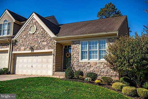 Welcome to Millstone! This immaculate 3 bedroom, 3 bath home is the perfect blend of elegance and functionality, offering main level living with no age restrictions. Nestled on a premium lot with a serene natural backdrop, this stunning home is the ideal space for any stage of life. As you enter, abundant natural light pours in through expansive windows and sliding doors along the back of the home enhancing the sophisticated architectural design, unique ceilings, and exquisite moldings. The inviting atmosphere is enhanced by gleaming hardwood floors that flow seamlessly throughout the foyer, dining room, living room, family room, and kitchen. The spacious kitchen is a chef's dream, featuring beautiful granite countertops, a built-in water filtration system and a breakfast nook with picturesque views through a charming bay window. The adjoining family room features a soaring two-story tray ceiling, providing the perfect setting for gathering with friends and family. The dining room’s distinctive tray ceiling with coffered detailing adds an elegant touch, creating an ideal space for hosting or entertaining friends. The living room is flooded with natural light from expansive sliders topped by an arched transom window, and it is complemented by a unique barrel ceiling, adding even more architectural flair to this stunning home. The living and family rooms feature doors that open to a stunning Trex deck, allowing you to enjoy the tranquil beauty of nature beneath a retractable SunSetter awning.