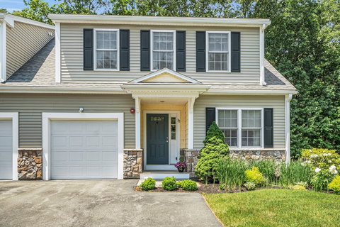 Welcome to Ellsworth Village, a 55+ community that offers a comfortable and convenient lifestyle. This spacious, end-unit townhome is located near the cul-de-sac allowing it to have a uniquely, expansive grass area. Entering the home, sunlight fills the bright, eat-in kitchen and the open floor plan is perfect for daily living or entertaining guests. The living room provides a relaxing atmosphere with cathedral ceilings and a cozy fireplace. Enjoy the ease of a first-floor suite comprised of a main bedroom, walk-in closet and full bath with a large walk-in shower. Upstairs, a loft overlooks the living room, alongside a second primary suite with a sizable full bath, laundry, and a large, private office. Enjoy a morning on the deck overlooking the trees in a quiet backyard. Additional features include an attached one-car garage and a full unfinished basement. Ellsworth Village is comprised of 33 townhouses with opportunities to join activities like book clubs and social events.