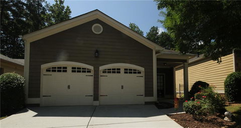 BACK ON MARKET..Buyer changed her mind. Ranch home - spacious, gently used 2 bedroom 2 bath condo. Great open concept. Hardwood flooring throughout. Bright and light. Solid surface counter tops. Delightful sun or flex room. KING-sized master with a closet to match! Black appliances, upgraded kitchen cabinets, newer light fixtures, front porch and private patio, with a separate laundry room. One year old HVAC, skylite, vaulted ceilings, plus two car garage. Gated community and home is handicap friendly. Lawn and trash included in low HOA fee of just $100/mo. The space is just right and it's located convenient to shopping, restaurants, entertainment and medical facilities. Town Lake and Outlet Mall within a 10 minutes drive. Sizing up? Sizing down ? Perfect for first timer too!! This home and community is appealing and pleasant. For the young and the young at heart alike, come see what this home offers you. Some furniture is available.