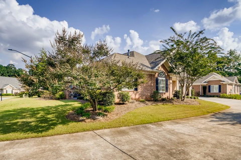 "Simply Elegant" describes this meticulously maintained three/two split bedroom one story Ranch style home, replete with numerous features from it's Sunny Sun room that is ideal for quiet reading or contemplation, or the open airy floor plan that creates a festive atmosphere with views to the family room and dining room, while entertaining. The kitchen features granite countertops with beveled edges, Travertine backsplash, GE Monogram, stainless steel appliances, Instant hot water for coffer, tea or soup and an area for a Baker or Butler's rack. The Master Suite features a king sized tub, separate shower, handicap handles and shower seat. Two additional rooms are opposed for privacy, that are spacious, and in pristine condition. Ample storage is provided in the oversized garage or use the stairwell to a floored air-conditioned attic space. This home has a private brick walled patio, memory nook, plantation shutters throughout and is move in ready.