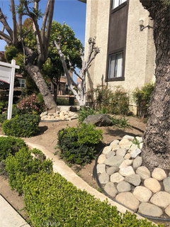 Spacious 3 story townhouse on the corner with high ceiling entry. Open floor plan with the living room, dining area and the remodeled kitchen with new paint, quartz counters, appliances, recess lights and lots of cabinets and prep counter spaces. Beside the 3 bedrooms, there is a den next to the kitchen and dining area with sliding doors to the balcony. High quality laminated floor thru out this level. There is an additional storage room next to the garage with walk-in closet and tiled floor. The square footage of this room is not included in the square footage of the total living area. Huge master bedroom with cathedral ceiling, master bathroom with large soaking tub, quartz counter top with double above counter ceramic bowl sinks. All the bathrooms have been remodeled. The attached two car garage has built in storage shelves. The property is located near the freeway, shops, church and schools, restaurants.