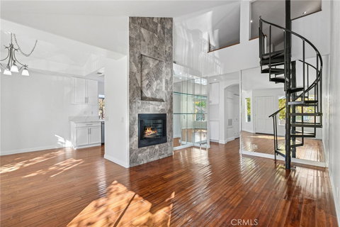 Extremely rare and valuable opportunity, 2 bedrooms plus an extra accessory room! Special builder’s addition, 1 of only 3 known to exist in the community. The third room, loft, office or lounge is 160 additional square feet that is surely to benefit anyone within the Laguna Audubon community, ideally situated near Laguna Beach. Parents, enjoy the benefits of the highly rated Laguna Beach School district with the added convenience of having the School bus stop 800 feet from home. Perfectly located in its private pocket as you enter the complex you will have your assigned private open parking and your enclosed car garage within feet. Enjoy entering your abode on the second level directly from your parking spaces. This fully 2024 remodeled home enjoys ultimate privacy without anyone above or below. Take pleasure from the 15 foot high vaulted ceilings as you enter. The living room offers a cozy fireplace, lots of windows bringing ample natural light connected to a private patio. The Kitchen is equipped with brand new or like new stainless steel matching LG appliances, Quartz countertops, enlarged Kraus sink and a cozy bay window. Ample amount of room for additional kitchen storage and an oversized fridge. Enjoy the warmth of wood floors throughout until you get to the large Master suite with vaulted ceilings, skylight, double vanity sinks and oversized tub. All bathrooms have all new fixtures. Water is being supplied through a brand new water heater. The community has been fully re-piped with PEX piping, ensuring peace of mind and reliability for years to come. The distinctive accessory room that begins from the upper landing of an architecturally pleasing spiral staircase has been used by the owners as a cinematic entertainment room with a queen fold out for guests. There are two attic access doors for added storage and a designated area for built-in closets. HOA covers water, trash and garage electricity. Garages on building corners such as this unit have the opportunity for EV charging expansion. This garage is prepared with a built-in desk, workbench, and Storage loft. Association plans are set for entire exteriors to be repainted 2025. Enjoy resort-style amenities including pools, spas, a gym and clubhouse only 100 feet away. Close access to toll roads, freeways, beaches, shopping and dining. This move in ready home presents an incredible opportunity for an exhilarating coastal lifestyle.