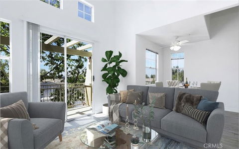 Step into this light and bright one-bedroom plus loft retreat, where soaring ceilings and abundant windows create an open, airy atmosphere you’ll feel the moment you arrive. Fresh interior paint, newer laminate flooring, and soft neutral tones provide a clean, modern backdrop that’s both inviting and easy to personalize. Plush carpeting on the stairs and loft adds warmth and comfort where it matters most. Newer HVAC system. Located on the top level, this charming home offers exceptional privacy and peaceful balcony views—the perfect place to unwind with morning coffee or enjoy coastal evenings. The open kitchen flows seamlessly into the living area, making everyday living and entertaining effortless, and comes complete with a refrigerator making this home truly move-in ready. An in-unit laundry closet with a washer and dryer adds everyday convenience. The bedroom features mirrored wardrobes and a ceiling fan, while the versatile loft can easily serve as a second sleeping area, home office, or creative space. A glass-enclosed tub and shower complete the well-designed bath. A rare and valuable bonus for this beach-close location, the home includes a detached private garage, offering secure parking, as well as an assigned parking space. Beyond the home, enjoy resort-style community amenities including a pool, spa and fitness center, and open green spaces designed for relaxation and connection. Ideally located just minutes from beaches, dining, shopping, entertainment, and convenient access to the 73 Toll Road. This is more than a condo—it’s a lifestyle opportunity in a highly desirable area, at a price that makes coastal living attainable. A must-see home you’ll be proud to call your own.