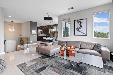 Welcome to 6 Cumberland Lane, perfectly situated on a great cul de sac street in the neighborhood of Woodlands at Westridge. This sleek modern split level 3 bedroom 2.5 bathroom home offers an unexpectedly sophisticated open feel behind the traditional exterior. Designer appointments, and smooth porcelain tile flooring can be found throughout this space offering an attractive modern palette emphasizing form and function, and further enhances its art like decor. A contemporary remodeled kitchen reveals dark smooth-faced cabinetry with modern pulls, stainless appliances and a light and bright dining area. A large light infused living room with generously sized windows offers a serene setting in which to gather. Main floor bedroom ensuite is full of natural light, offers a large walk-in closet with custom organization, and includes a truly remarkable, spa-like bathroom with enormous floor to ceiling glass shower with double rain like shower heads and floating modern cabinetry with modern fixtures. 2 additional secondary bedrooms on lower-level feed from the bonus room and create a full floor retreat perfect to suit a variety of needs, while providing the opportunity for complete privacy from the main floor. Downstairs Laundry with laundry sink and upper and lower storage cabinetry. Updated contemporary vanities in all bathrooms. Backyard patio offers a Zen like garden and private entertaining space with well-manicured plantings. Ideally located in close proximity to nearby schools, shopping, local beaches, Aliso/Wood Canyons Regional Park, hiking and biking trails and a multitude of dining options. Convenient access to local toll roads and 5 freeway makes commuting a breeze. Welcome Home!