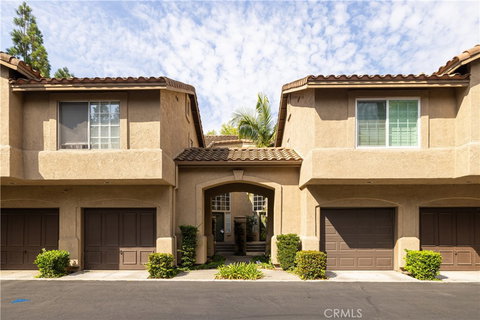 The Calabria Community developed by William Lyon has always set the tone for luxury townhouse style living in Aliso Viejo. This “Montagna Plan E” rarely comes to market. It boasts the largest of all floor plan designs and has a generous rear patio to combine indoor / outdoor living. Perfectly placed in a quiet and private location within this 248-home community you’ll appreciate the front courtyard and formal entry with sparkling chandelier. Step down to the main level open dining and living area with fireplace. Enjoy a granite enhanced kitchen with tumbled stone back splash accent, stainless steel sink and charming garden window. Powder room half bath and inside laundry room round off the main level. Recent upgrades include re-piped plumbing in 2019, added storage space, updated light switches and outlets, new garage door, new front door and new H2O heater. The second level has 2 large en-suite bedrooms. The primary suite has a vaulted ceiling, a window seat and luxurious fully remodeled bathroom along with abundant closet space. The secondary suite has double mirror wardrobe closets and lovely tiled bath with tub and shower. Convenient direct access into the home from the private single car garage and guest parking is nearby. Beautiful securely gated community pool and spa with lovely lounge chairs and rest rooms. Easy access to AV’s popular Town Center with convenient shopping and multiple dining and entertainment choices.