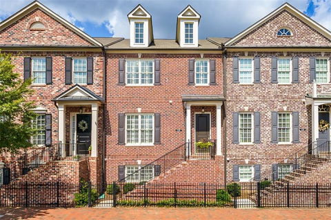Can't get any better than this! Just a few feet from vibrant Downtown Alpharetta and the many shops, restaurants, and parks the city has to offer. Open concept floor plan showcases a dining area, spacious kitchen with stained cabinets, granite counters, marble subway-tile back splash and breakfast bar. Spacious living room with built-in cabinets, fireplace and access to outdoor deck area. Owner's suite and (2) secondary bedrooms upstairs. Owner's suite features large walk-in closet and spa-like bath with separate tub/shower. Lower level features a bedroom/flex room with full bathroom. Hardwoods on main level (carpet in secondary bedrooms). Plantation shutters throughout. Community offers a private dog park.