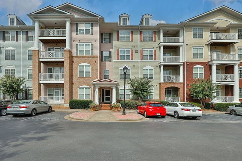 Welcome to Westside Commons, a fantastic condominium located in the heart of Alpharetta! This beautiful end-unit condo features the largest 3-bedroom, 2-bathroom floor plan, boasting plenty of extra windows for ample natural light. The master suite includes double vanities and a spacious walk-in closet, as well as a separate tub and shower. The layout offers a sun-filled open concept, with three large bedrooms, each equipped with a walk-in closet and private en-suite bathroom. The main living space consists of an eat-in kitchen with a kitchen island, providing direct sightlines to the family room and balcony access. From the balcony, you can enjoy views overlooking the shared, tree-lined green space. The covered patio/deck provides a perfect spot for relaxation. Westside Commons also offers amenities such as a community pool, shared with the townhome community at Westside Villas, and a lovely greenspace/dog park/community area just steps above the condo entrance at Encore Park. Additionally, you can easily walk to concerts at Ameris Amphitheater. The location is very convenient, with easy access to GA 400, restaurants, and Northpoint Mall, and Top Golf. The HOA includes secured building entry/access, an elevator, water, assigned parking, and garbage collection, with plenty of visitor parking available. Plus, it's just minutes away from Downtown Alpharetta, Roswell, and Avalon.