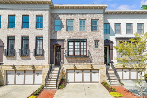 PRICE IMPROVEMENT IN DOWNTOWN ALPHARETTA! Elevator...Sensational four level Townhome with 4 bedrooms,4.5 baths in downtown Alpharetta's hidden gem neighborhood of"Windsong". The townhome is your own private oasis , off the beaten path, but seconds from restaurants, shops, City Center,festivals, farmer's market and Wills Park and everything downtown Alpharetta has to offer. As you enter, a captivating open-concept layout welcomes you, facilitating effortless flow between the living, dining, and kitchen spaces. Abundant natural light floods through expansive windows. The generous dining room effortlessly accommodates gatherings of 12+ individuals, offering the flexibility to transform into a cozy lounge or an entertainment hub as needed. The butler's pantry features a beverage center custom cabinetry. At the heart of the home lies the Gourmet kitchen, with 48" Wolf Range and Sub-Zero appliances , Quartz countertops, and custom cabinetry . From this culinary haven, you can peer over into the inviting fireside living room, featuring a striking stone electric fireplace flanked by built-in shelves on both sides and complemented by a tasteful coffered ceiling. Connected to the living room, there lies a sunroom, presently utilized as a piano room. Enjoy the deck that has views of the fenced back yard and wooded wildlife habitat. One the top level, the Owner's suite comprises of two closets with custom cabinetry. The Owner's Suite Bathroom exudes opulence with its two elegant vanities and a spacious shower enveloped in floor-to-ceiling marble tiles. Adjacent to the Owner's Suite, you'll find the well-appointed laundry room, complete with custom cabinetry, quartz countertops, and a generously sized sink. Two sizable secondary bedrooms, each with custom closets. Secondary bathroom features a vanity and Marble tile shower. The terrace level includes a 3 car tandem garage w/granite epoxy floors, an additional bedroom w/full bath and a media room and deck. The fully finished basement includes a home gym, w/full bathroom and access to a relaxing patio and fenced backyard, maintained by the HOA. ADDITIONAL FEATURES: Site finished Hardwoods on top 3 levels, LVT floors in basement, Genesis Elevator, Water purification system, Screens on select back windows, Sonos on 3rd and 4th floors, remote controlled shades or plantation shutters on select windows, custom cabinetry in closets and garage. This unit has a level driveway with additional parking.