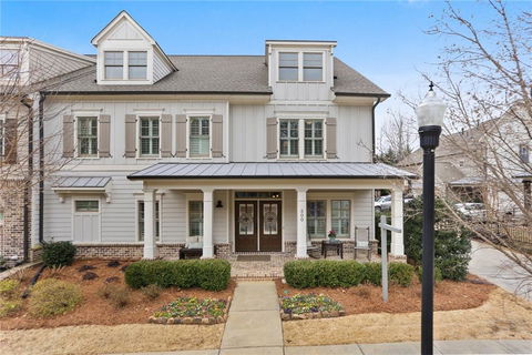 Come home to exactly what you've been looking for in historic Crabapple. This home has it all with Master on Main, his/her closets, his/her vanities, two laundry rooms. Enjoy a large cook's kitchen with Thermador professional cooking appliances, butler's pantry, wine rack, island and breakfast bar, exquisite white and gray marbled granite countertops, breakfast room, walk in pantry, tons of cabinet storage. Open concept family room with coffered ceiling and fireplace, opening to the large covered back porch perfect for entertaining, with small fenced yard. Even with open concept, there are plenty of spaces to have privacy to work, play or relax. Enjoy a separate office/living/library room, or retreat to the upstairs to the open recreational area with bar, room for stools complete with mini fridge. A nearby nook could easily convert to desk space, and take a break in the separate workout room. Upstairs also include another ensuite and two additional bedrooms with jack/jill bath. The pristine garage is a homeowner's dream complete with an epoxy finished floor, almost like another room. Enjoy the covered front porch; then venture out with sidewalks leading to all parts Crabapple, you are mere minutes to restaurants, shopping, parks and schools. A needle in a haystack, this home will sell quick.