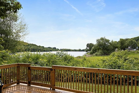 Lake living like you've always dreamed with this one of a kind, beautifully renovated Townhouse!! Immediately you will be welcomed by an ever too friendly neighborhood, offering a clubhouse and sandy beach at the ready. The moment you enter you'll notice the main floor is a wide-open concept with European white oak floors, an updated kitchen with shaker cabinets, stainless steel appliances with a peninsula, and an island for all of your storage and entertaining needs. Off of the kitchen is a 3/4 bathroom, with tile shower and space for linens, a dining space with large window, and a spacious living room flooded with natural light flowing through the slider that leads out to a private deck overlooking Lake Gardner. The second level has tons of natural light and views pouring through the windows of the three spacious bedrooms, sharing an updated full bathroom, with a washer and dryer closet in the hallway. The finished basement is supplied with an amazing wood-burning stove