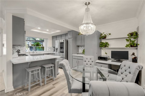Don't miss out on this unique opportunity to own a lower-level, turnkey 2-bedroom, 2-bath condo in one of Anaheim's most sought-after subdivisions: Evergreen Village. 3537 Greentree Unit #A presents itself as an ideal choice for first-time homebuyers or even an elderly couple seeking to downsize, all without the hassle of repairs or the financial burden of home upgrades. The condo showcases a range of upgrades, including brand new laminate flooring and baseboards, quartz countertops, new bathroom vanities, new bathroom tile, and LED recessed lighting. Other thoughtful amenities include two assigned 1-car enclosed garages, a breakfast bar, an oversized outdoor patio, a private master suite patio, a dual-vanity master bathroom, a gas-burning fireplace, an in-unit washer and dryer, a kitchen bay window, a large guest bedroom closet, a walk-in master closet, and a built-in office. Nominal HOA fees ($360) are accompanied by a wealth of amenities that include mature trees, resort-style pools and jacuzzis, saunas, water, basic cable, trash, internet service, weekly grounds maintenance, and ample guest parking for visitors. The condo's location is equally impressive, offering quick and convenient access to Disneyland, Knott's Berry Farm, a variety of restaurants, shopping centers, gyms, and diverse entertainment options. In addition, 3537 Greentree #A is in one of the few condominium complexes in all of Orange County that is FHA/VA-approved and is also dog and pet-friendly. Make sure to stop by the open house on Sat (08/26) & Sun (08/27) from 1-4 PM before it's too late. This is one you won’t want to miss!
