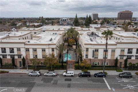 Absolutely prime Anaheim location for this single level condo, built in 2014. The Domain is a collection of luxury, urban-styled condominiums located across from the Anaheim Packing House/Farmer's Park and sits in the hub of Anaheim’s revitalized downtown. This modern gem is in walking distance to a variety of exciting venues and a short trip to the Disney Parks, Anaheim Stadium, Amtrak station, Honda Center and The Grove of Anaheim. This top floor model, which has an ideal interior location within the community, has 3 bedrooms including a large master suite, set apart from the other bedrooms. The master bath has a separate shower, soaking tub and dual sink vanity. The open floor plan melds kitchen, dining and living areas, with an adjacent balcony for outdoor space. The kitchen features contemporary white cabinetry, stainless appliances, granite counters and center island. Guest bedrooms, which have a great view of the community's center courtyard, and bath are on the other side of the unit. Full sized washer and dryer have an inside closet location outside the 2nd bath. The elevator is conveniently located outside your front door and takes you to the garage access door. Larger cars have no problem parking in the deep, 2 car garage, which also has an inset, great for additional storage. Luxury living with a community that offers a rooftop deck, and a trendy pool area with BBQs, patio area and fireplace. Get around conveniently with surrounding access to the 5, 57 and 91 freeways. Experience an exciting urban lifestyle.