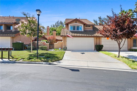 ***From the professionally landscaped front courtyard to the back patio, all the upgrades have been done for you in this beautiful, two-story Anaheim Hills home located in Camino Grande Villas!*** A gated, brick accented front patio greets you upon arrival. Pride of ownership shows as this dual master home has been completely refurbished within the last two years. The long list of updates throughout include all new luxury waterproof vinyl plank flooring, plantation shutters, new top-rated KitchenAid matching appliances, wide base moldings, custom pull-outs in kitchen cabinets, custom shelving added in living room, organizers in both master walk-in closets, new windows and sliding glass doors, new interior doors and hardware, as well as a new entry door with sidelight. Plentiful custom wood cabinetry and loads of granite counter space accented with stone backsplash make this upgraded kitchen not only efficient, but a pleasure to work in. The spacious living room features vaulted ceilings and a gas fireplace. The dining area and kitchen open to a lovely pergola back patio with gas connection for the BBQ. Enjoy views of the hillside and greenbelt from this private patio. The convenient upgraded downstairs powder room, ceiling fans in both master suites and living room, spacious linen closet in upstairs landing area, and remodeled master baths highlight the home. A full-size driveway leads to the 2-car direct access garage which offers an abundance of built-in custom cabinets, like-new washer & dryer (2020), new water heater (installed 2020), and whole house soft water and RO system. Situated on a great cul-de-sac location, this beautiful community is convenient to Anaheim Hills Golf Course, great schools, hiking trails, shopping centers, and freeways. Truly move-in ready, all you need is your belongings! What are you waiting for?