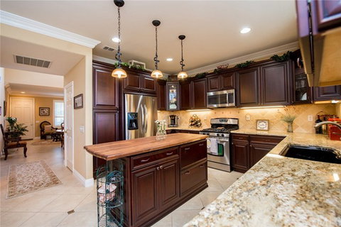 PRICE ADJUSTMENT! VIEW CAMBRIA HOME NOW ON THE MARKET! NESTLED IN THE SCENIC HILLS OF ANAHEIM HILLS, THIS TURNKEY THREE BEDROOM (OPTIONAL 4) 2.5 BATH PLUS LOFT HOME HAS IT ALL! RECENTLY REMODELED THIS HOME FEATURES A VOLUMINOUS FORMAL LIVING/DINING AREA WITH TASTEFUL NEUTRAL COLORED 18 INCH CERAMIC FLOORING. ENTER INTO THE KITCHEN AND YOU WILL FIND A FOOD LOVERS HAVEN. NEARLY NEW ARTISAN CHERRY CABINETRY WITH SOFT CLOSE DRAWERS, RECESSED AND UNDER CABINETRY LIGHTING, CORNER LIT CABINETRY, GRANITE COUNTERTOPS, STONE BACKSPLASH, STAINLESS STEEL APPLIANCES ARE JUST A FEW OF THE FEATURES OF THIS SPACE. AN EXTENDED FAMILY ROOM WITH BUILT-INS AND FIREPLACE ALLOW FOR EASY ENTERTAINING. EXIT THE FAMILY ROOM THROUGH FRENCH DOORS ONTO A COVERED PATIO WITH FAN AND YOU WILL FIND A BACK YARD WITH FIRE PIT AND SEATING AREA TO ENJOY THE VIEW. UPSTAIRS YOU WILL FIND HARD WOOD FLOORING THROUGHOUT. THERE IS A GREAT LOFT/OFFICE AREA WITH CROWN MOULDING AND SHUTTERS. DOWN THE SPACIOUS HALL THERE ARE 2 SECONDARY BEDROOMS, A LAUNDRY ROOM AND RECENTLY UPGRADED SECONDARY BATH WITH TRAVERTINE FINISHES. DOWN THE HALL IS THE MASTER SUITE WITH HIGH CEILINGS AND FRENCH DOORS WHICH LEAD TO A BALCONY. THE VIEW IS PANORAMIC FROM THE BALCONY, VIEWS OF HILLS, SUMMER FIREWORKS AND TWINKLING CITY LIGHTS! LOW TAXES, COMMUTER FRIENDLY! MAKE YOUR APPOINTMENT TODAY, YOU WILL BE HAPPY YOU DID!