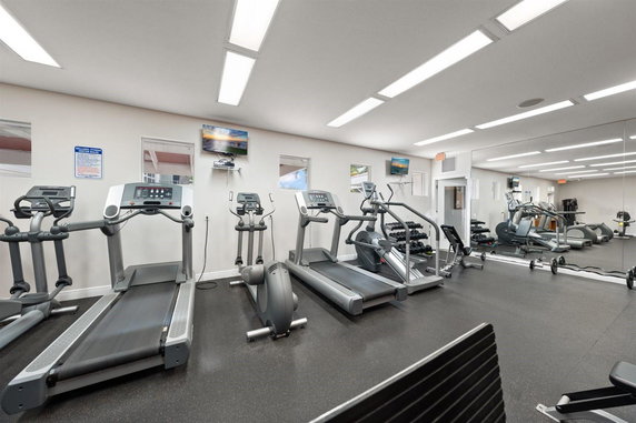 The building offers several amenities. There are sidewalks for strolling and a fitness center for workouts. A large pool area, hot tub, and tiki bar, along with a private clubhouse, create a resort-like atmosphere. Oversized garages help with parking, and unit access is easy with elevators.