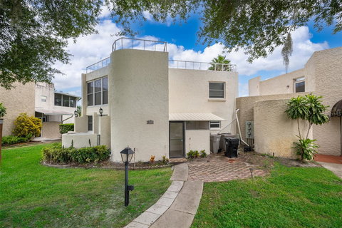 This one-of-a-kind townhouse has been fully remodeled and freshly painted, featuring 3 master bedrooms, each with its own private bathroom. The main master bedroom has a walking closet. The home boasts brand new waterproof vinyl flooring throughout, a spacious kitchen with ample cabinetry, quartz countertops, and stainless steel appliances. The bathrooms are beautifully updated with floor-to-ceiling tile in the showers. A striking iron spiral staircase leads to the second floor, where you’ll find two additional master bedrooms and access to an outdoor balcony. From there, another spiral staircase takes you up to the rooftop, offering stunning views of the golf course and lake. AC 2016, Heater 2024. This unique property offers luxury and style with incredible outdoor living space. Don’t miss out on this rare opportunity!