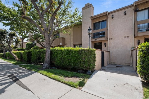 Welcome home! Look no further, this gated community offers beautiful landscaping and a sparkling pool and spa that you have been waiting for! Rare opportunity to own a 3 bedroom, 1.5 bath home complete with an attached 2 car garage that has laundry hook ups and storage shelving. Enjoy cooking in the bright kitchen that boasts granite countertops and opens up to the dining room and a breakfast bar overlooking the living room. Relax by the gas fireplace or enjoy the beautiful Southern California weather on the tranquil private patio. Entertaining made easy with the open concept, hardwood floors and downstairs powder room. Fresh paint and new laminate flooring along the stairs and throughout the second level. All three bedrooms offer spacious closets and primary bedroom has 2 large closets! Abundant storage throughout. Conveniently located next to shopping, restaurants, parks and freeways.