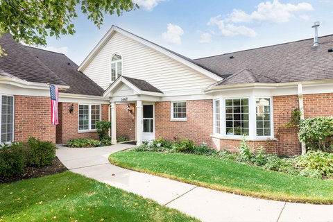 Highly coveted, RARELY AVAILABLE, stunning townhouse located in prestigious Luther Village in Arlington Heights. This spacious 1,950 sq. ft. home boasts 2 bedrooms, 2 bathrooms, and a massive 2nd story Loft perfect for a recreation room, home gym, home office, or artists studio. Situated on a corner lot, this property offers a sense of privacy with serene views of the pond and exquisitely landscaped walking path. Step inside to discover a beautifully renovated kitchen, complete with granite countertops, stainless steel appliances, glass backsplash and a windowed dining nook. The open floor plan also features a living room and dining room with hardwood floors, recessed lighting, vaulted ceilings and skylights, providing ample space for entertaining and daily living. The spacious primary suite features scenic views of the pond, a walk in closet, linen closet and ensuite bath with dual vanities. The main floor also offers an additional bedroom, full bath and a gorgeous 3 seasons room, perfect for taking in the garden and water views with your morning cup of coffee. Stay comfortable year-round with central AC and gas forced heat. The laundry room is equipped with a washer and dryer for convenience. Parking is a breeze with an attached garage, private driveway, and guest parking included. The Village offers a peaceful retreat made up of 55 acres of common courtyards, gardens and ponds with paved walking paths. Additionally, the clubhouse, pool, whirlpool, library, billiards room, computer room, gym, and muti-purpose rooms offer plenty of options for an active lifestyle. The 2 on-site restaurants, pharmacy, bank, salon and country store provide added convenience. You can have peace of mind knowing the Village offers Campus Security, an in-home security system w/wireless personal medical alert system, in-home 24 hr emergency call system and landscaping, snow removal and grounds maintenance. Don't miss the opportunity to make this exquisite townhouse your new home!