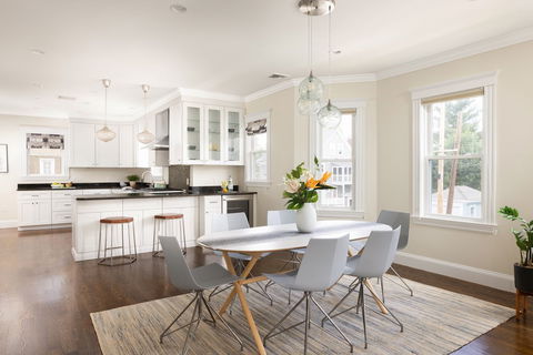 Lucky you! This home, just recently renovated in 2017,is on the market and ready for new owners!This condo is like new and located in a charming Philadelphia style home.It is spacious & lovely.From the moment you walk in you will be impressed by the soaring high ceilings&smart layout.Private front office opens out to the front porch.Open concept living room,dining room,kitchen is amazing for entertaining.Great mudroom area off the kitchen&a second outdoor space.Upstairs there are three massive bedrooms.All have great closet space. A full family bathroom in the hallway adjacent to second floor laundry.Lovely primary suite with dreamy walkin closet and private bath.Large unfinished storage in the basement.1 car garage plus driveway parking - the garage has been wired with a 240 outlet for EV charging.whole house is wired with cat5e cable for internet with patch panels.Home is steps to all things awesome in E.Arlington-restaurants,bakeries,coffee shops,library&public transportation