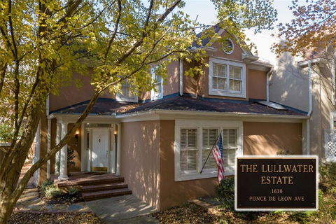REAL LIVING Luxury begins at Lullwater Estate in Historic Druid Hills! Spacious, renovated, end-unit TH that "feels" like a single family home with well appointed living areas, chef's kitchen, fireplace, hard-to-find master suite on the main with spa bath, & storage throughout! Ample bed/bath space on the 2nd & terrace levels & a cool two-car garage! Observe nature while retreating to peaceful tranquility in your private courtyard and deck. Convenient to all things Atlanta and only steps from Druid Hills Golf Club, Olmsted & Freedom Parks, & Candler Park!