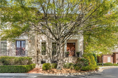 Rarely available Monte Hewitt EarthCraft end-unit townhome, beautifully situated in an exclusive gated Buckhead community with over 10 acres of green space. This home offers an ideal floor plan for entertaining, featuring soaring 10-12 ft ceilings and an oversized living area complete with a cozy fireplace, built-in bookcases, a wall of windows, and three sets of massive French doors that open onto a secluded patio with outdoor dining area & pool views. The gourmet kitchen boasts a stunning oversized island, custom cabinetry, Viking and Asko appliances, a walk-in pantry, and a bright breakfast area. The separate large dining room is filled with natural light. Throughout the home, site-finished hardwood floors, Plantation Shutters, & beautiful moulding add a refined touch. The oversized Owner’s Suite offers soaring vaulted ceilings, a sitting area, a Juliette balcony, and an entry with a wet bar/coffee bar. The Owner's en-suite bath is elegantly appointed with stone floors, a spacious shower, a separate Jacuzzi tub, and a custom walk-in closet. The guest suite offers views of the Buckhead skyline, and the large terrace level includes a full office area and an additional ensuite bedroom or mother-in-law suite. Additional features include a two-car garage with two large storage closets, plus a covered portico for two extra parking spaces. The community offers exclusive amenities, including a beautiful pool, spacious dog park, and private green space with a gazebo for townhome residents only. Super low HOA Dues and Rentals Allowed! This property is within walking distance of Buckhead’s top restaurants, shopping, entertainment, and MARTA for convenient airport access.