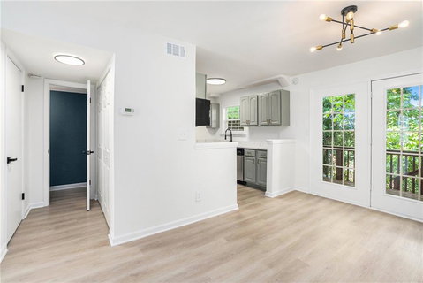 Welcome to this renovated two-bedroom, townhome in the desirable Sandy Springs/ Perimeter area. This modern home features a fresh kitchen with quartz countertops and stainless steel appliances. Luxury vinyl plank flooring is installed throughout the main level. The primary bathroom is beautifully updated with a new vanity, quartz countertops, a metal-framed mirror, an LED vanity light, and a stand-up shower with designer tile, and valves, along with a new low flow toilet. The condo also boasts energy-efficient LED fixtures and high-tech fans throughout. The living room offers a shiplap accent wall, a dedicated dining area with a glass chandelier. The well maintained complex benefits from low HOA dues. Conveniently located near GA 400, I-285, Perimeter, Sandy Springs, and Dunwoody, this townhome is perfect for those seeking a stylish, move-in-ready home in a prime location. *$2500 Closing Cost Credit with use of Charles Calloway @ Movement Mortgage*