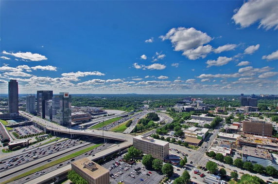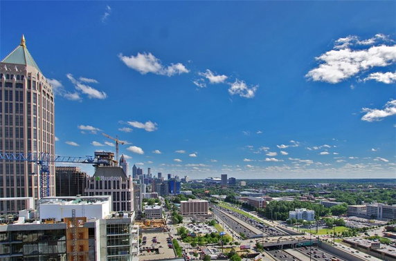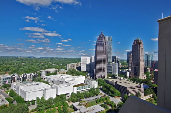 Floor-to-ceiling windows provide stunning views of the city skyline. Many units also come with private balconies to enjoy the open air. The nearby neighborhoods of Piedmont Park and Colony Square offer vibrant community spaces. The High Museum of Art and Atlantic Station are also a short distance away, enhancing local culture and entertainment.