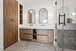 Inside, there are open concept living spaces with soaring 10-foot ceilings. Living rooms include a gas fireplace for added warmth and comfort. White oak flooring runs throughout, enhancing the stylish look. Kitchens feature quartz countertops with waterfall edges and high-end professional series appliances.