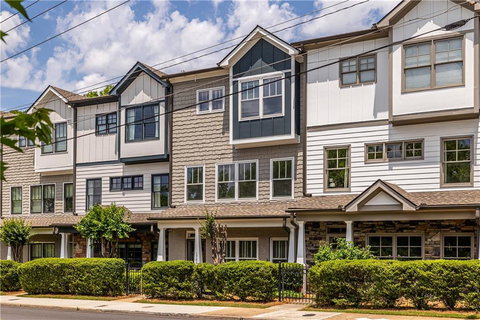 4BR/3.5 Bath townhouse + a bonus room on the main level! Newer construction with tons of space & super functional living areas in lovely Lake Claire/Candler Park. The main level has rich hardwood floors, a modern open floor plan, a wall of oversized south-facing windows, and a large open kitchen with granite counters, lots of cabinet space, and an island that is perfect for entertaining/gathering around. There is also a dining room area and a bonus space on the main level that works well as a playroom, office, or a second sitting area. The kitchen opens to the dining room which opens to the peaceful back deck that overlooks a lush greenspace with trees and grass that is perfect for dogs, kids, or just relaxing.