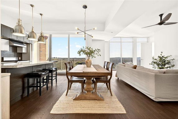 Units in this building range from 1,341 to 1,441 square feet. Each unit offers either 2 or 3 bedrooms. Residents enjoy stunning views of the city skyline, especially Midtown and Buckhead. Some corner units feature multiple balconies that enhance outdoor living space. High ceilings over 10 feet create an open and airy feel.