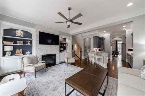 Tucked away just off Peachtree Road in the heart of Brookhaven, this beautifully appointed townhouse showcases quality craftmanship and timeless finishes throughout. Ideally located just minutes from grocery shopping, dining, parks, and malls, this home offers both convenience and comfort in one exceptional package. From the moment you enter this warm and inviting home you can feel the solid construction and materials. Starting with the rich true hardwood floors and elegant oak tread staircases accented with wrought iron railings. Custom moldings add architectual character, while the spacious family room features a striking stacked stone fireplace and built-in cabinerty-creating a warm yet sophhisticated gathering space. The kitchen is designed for both everyday living and entertaining, complete with quartz countertop, double oven, gas cooktop, refrigerator, soft close cabinetry and pantry. Each spacious bedroom includes its own private bath, offering comfort and privacy for family and guests alike. The top floor features a versatile flex space with a full bath and bar cabinetry-perfect for a media room, home office, guest suite or bonus retreat. The home truly blends quality construction, thoughtful design, and an unbeatable location.