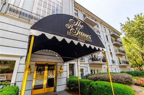 Amazing location! Large and spacious 3 bedroom 3 bath condo near Buckhead. Easy walk to Phipps Plaza, Marta and the Lenox Mall. One of the largest floor plans in St. James. Large kitchen, with pantry leads to separate dining room. Fireplace in the family room. French doors. Master suite has walk-in closet, plus additional closet, large bathroom, double vanity, spa tub, and separate shower. Amenities include pool, fitness center, gas grills, pet friendly, and beautiful flower gardens. Parking includes 2 covered assigned spaces.