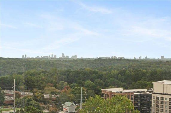 Floor-to-ceiling windows in many units provide natural light and stunning views of the Atlanta skyline and Kennesaw Mountain. Some units showcase high ceilings and exposed concrete, enhancing the modern vibe. The area enjoys sidewalks and street lights for pedestrian comfort.