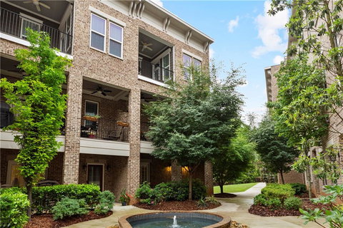 Gorgeous END unit Brownstone in sought after Old Fourth Ward area. Best location within the community - the townhome faces a quiet courtyard with fountain and includes upgrades galore. Previous model home! En-suite guest room on lower level, 10 foot ceilings throughout, tons of natural light. Kitchen with upgraded large honed marble island, white custom cabinetry, breakfast area, upgraded appliances. Living room with coffered ceiling, built-in's, electric fireplace. Owner's suite with extra sitting room, double vanity, walk-in closet. Amazing balconies and outdoor space with dedicated gas line for grilling! Tankless water heater, hardwood floors throughout. Great amenities including a pool and dog run. Seconds to the BeltLine, Ponce City Market, Old Fourth Ward Park, Central Park.
