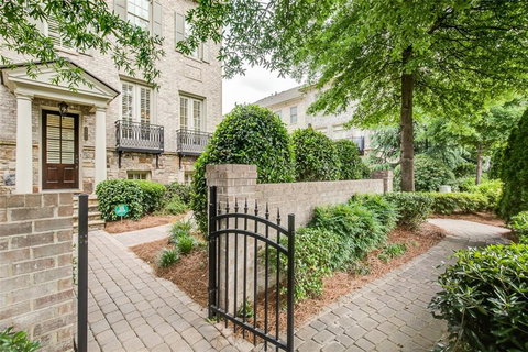 Beautiful former model home close to shops & restaurants. Large all brick end unit city twnhme w/elevator, private gated courtyard w/fountain, high end finishes thru out w/thick crown/wainscoting, plantation shutters, updated kitchen cabinetry w/subzero refrig/wine refrig, Wolf range & Bosh dishwasher. 10ft Ceilings, Lg master, custom closets all 4 BR. newly finish hardwoods. Includes washer/dryer, Sony and Samsung TV, Contol4, Sonos, Integra and surround sound speakers. Neighborhood has dual access on Peachtree Road & Narmore/Calvert/Peachtree Dunwoody Road.