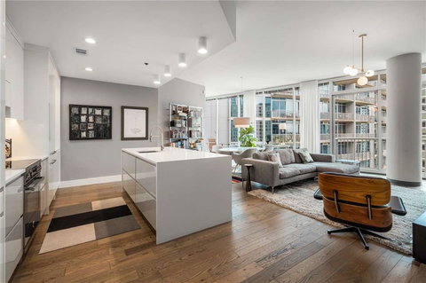 Welcome to the lap of luxury in one of Atlanta's most popular high-rise buildings in the heart of Midtown, Plaza Midtown! This 2 bedroom / 2 bathroom 1260 square foot unit on the 13th floor is one of the largest original floorplans with great views facing south and east. As you enter this amazing home, you will immediately notice all the nice designer touches. This unit has been totally renovated (including new hardwood flooring) from top to bottom making the bathrooms and kitchen the most luxurious you've seen. The kitchen alone boasts expanded kitchen cabinetry, a built-in bar with iron glass shelving, new quartz waterfall island with seating, luxury built-in refrigerator, luxury stainless induction cooktop with hood, and new dishwasher and disposal. Both bathrooms are completely renovated with new vanities, Carrara marble tile, quartz countertops, and new glass showers and lighting. The living room and dining areas have designer lighting and a new plaster ceiling is seen throughout the home. And don't forget the floor-to-ceiling windows showing off the fantastic views! Also, the water heater is only 6 years old. The new HVAC was installed in 2021. Walkability is everything and this building gives it all to you! Walk to Publix super market just down the elevator, walk to tons of restaurants, Piedmont Park, The Fox Theatre, Georgia Tech and more!! Don't let all this luxury get away!
