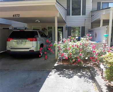 Thoughtfully renovated in Dunwoody! Custom kitchen cabinets and granite countertops, soft-close drawers and doors, built-in panty, and hidden microwave. The walls of the galley kitchen have been removed for great views and openness. There’s even room for an office! Main level has gleaming hardwood floors, large family room, and a beautiful dining area looking out to the peaceful back yard. New sliding patio door leads out to the custom composite deck. By the way, this door glides open like warm butter on toast! Also on the main level, an oversized half bath with large laundry closet. Up the open hardwood stairs you’ll find 3 bedrooms and 2 large bathrooms. The large master bedroom has a double closet. The master bathroom has a closet, a built-in ironing board, and large shower with a bench. The other 2 secondary bedrooms have ample closets. This complex is a tucked away gem in Dunwoody! Walk to shopping and restaurants and MARTA bus stop. Dunwoody schools. No rentals allowed.