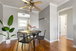The home's light-filled interiors come with reliable features such as hardwood floors and assigned parking spots. Additional benefits may include updated appliances and private fenced backyards. The building's location across from Grant Park adds to its charm.
