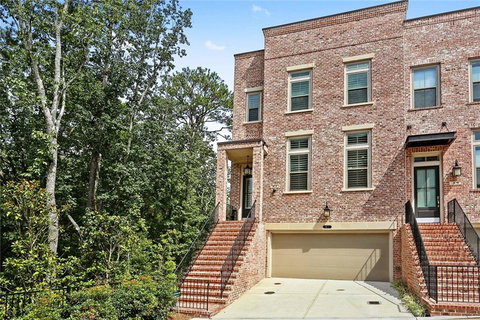 Welcome to an exceptional opportunity in the desirable Prescott Walk community! This stunning Ashton Woods end-unit townhome is a rare find offering a blend of elegance and functionality, boasting 4 bedrooms and 4.5 bathrooms for a luxurious living experience tailored to the discerning homeowner. Perfect for entertaining, the main level features an open kitchen with a spacious exotic granite island and ceiling-height cabinetry. The four-sided brick exterior exudes elegance, complemented by exquisite fixtures and finishes throughout, a cozy fireplace in the living area, and multiple private decks. Strategically placed closets on each level serve as elevator shafts, offering potential for easy installation. Hardwood floors grace every level, adding warmth and sophistication. Upstairs, the primary suite invites with an ensuite bath showcasing a tiled shower, frameless shower door, and two separate vanities. Generously sized walk-in closet with shelving offers added convenience and organization. Down the hall, you’ll find a secondary bedroom with its own ensuite bathroom, conveniently located near the laundry room. Equipped with a washer, dryer, sink, custom cabinetry, and a second small load washer, the laundry room offers added utility. The vanity countertop is adorned with exotic granite, adding a touch of luxury to the space. The lower level features a versatile third bedroom with a full private bath, ideal for visiting guests or convenient home office. A spacious two-car garage provides ample parking and storage. On the terrace level, discover a fourth bedroom with its own full private bathroom and additional plumbing for a bar or kitchenette, enhancing your entertainment options. Step outside, to unwind on the patio and enjoy the tranquil green space, perfect for outdoor relaxation. Timer-controlled on-ground irrigation system ensures effortless maintenance. Located just moments from Perimeter Mall and the recently developed Ashford Lane, you’ll enjoy an array of dining and shopping options. Take advantage of nearby Marta for easy access to Atlanta, while Downtown Sandy Springs and Dunwoody village offer further amenities. Outdoor enthusiasts will appreciate the proximity to Morgan Falls Park and Brook Run Park. With convenient access to interstates GA-400 and I-285, this exceptional townhome offers the perfect blend of luxury, convenience, and lifestyle. Don’t miss your chance to make it your own! *Furnishings and walk-in closet system depicted in photos are not current.