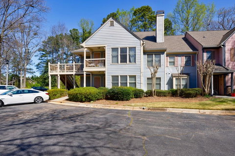 Welcome to your cozy sanctuary nestled at the back end of the Oaks of Dunwoody. This spacious, 2 bed, 2 bath end unit with renovated kitchen and baths is the perfect retreat. As you step through the door, you're greeted by the warm glow of the fireplace, casting a soothing ambiance throughout the open concept living area. The spacious layout seamlessly connects the living room, dining area, and kitchen, creating an inviting space for both entertaining and relaxation. The kitchen features sleek granite countertops, stainless steel appliances, and ample cabinet space for all your culinary needs. The two spacious bedrooms with en-suite baths flank the living room offering complete privacy. Sunlight floods in through the expansive sunroom windows- attached to the open-air porch. This versatile space offers endless possibilities. 610 Abingdon is a coveted street-level, end unit. Amenities include swim/tennis. Close to shopping, restaurants, highways.