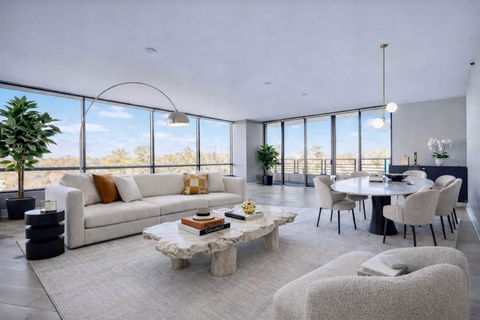 Arguably the most sought-after and rarely available floor plan in Park Regency! Residence #1207 offers sophisticated living high above Buckhead. A dramatic wall of windows frames sweeping views across the treetops and toward distant open horizon, creating a light-filled backdrop throughout the main living spaces. The primary living area is open and generously scaled, with ample room for both defined living and dining areas. New flooring runs throughout, enhancing the clean, cohesive feel. The kitchen opens seamlessly to a cozy breakfast room and access to a charming private balcony with built in planters. A second balcony extends across the entire residence, accessed from both bedrooms and the living room ideal for enjoying morning light or evening sunsets. The primary suite is spacious and serene, complete with a large walk-in closet and a luxurious ensuite bath offering double vanities, a soaking tub, and separate shower. The guest bedroom is perfectly suited for visitors or a dedicated home office. Additional highlights include abundant interior storage, a separate storage unit, two assigned parking spaces, brand-new flooring and paint, and a newly installed HVAC system making this home truly turnkey. Park Regency delivers an unparalleled Buckhead lifestyle defined by service, security, and resort-level amenities. Residents enjoy a grand lobby with 24-hour concierge and valet, electronically monitored access controls staffed 24/7/365, gated entrance and secured parking, and a full-service onsite team including engineering, housekeeping, maintenance, and management. Amenities include a heated resort-style pool and hot tub, fitness center with steam and sauna, rooftop terrace, climate-controlled wine cellar with assigned wine lockers, event room with catering kitchen, two guest suites for owners' use, pet walk and emergency call systems in every residence. Recent building upgrades include a new roof and updated elevators and lobby. This is a rare opportunity to enjoy sophisticated, lock-and-leave living in one of Buckhead's most established and service-oriented high-rise communities. Images have been virtually staged.