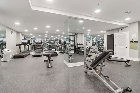 The building provides diverse amenities like a pool, fitness center, and dog park. Outdoor enthusiasts can enjoy nearby trails and greenways. Additional features include a clubhouse, playground, and business center, which enhance everyday living. A catering kitchen and meeting room help facilitate gatherings and events.
