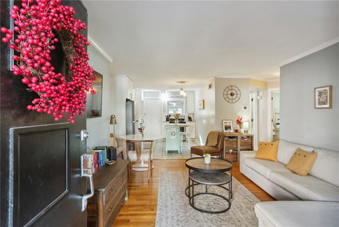 The kitchen and bath boast tile floors, while hardwood flooring covers the remaining rooms. The kitchen has ample cabinets and counter space. Both bedrooms are roomy with large closets. The first floor front patio offers spacious outdoor entertaining and relaxing. The assigned parking space is conveniently located between the front and back doors. The unit has it’s own assigned storage space in the basement, where there is a separate room for bike storage.