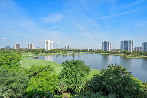 Stunning condo with breathtaking sunsets located in Turnberry Village, adjacent to the world-renowned Turnberry golf course in Aventura, overlooking the serene beauty of the lakes and greenery. This completely remodeled condo boasts a 3 BR - 3 full bath split floor plan with spacious walk-in closets. Custom open kitchen with stainless steel appliances and additional built in kitchen cabinetry, Italian Marble floors throughout, custom made closets and doors, complete with high-impact windows and doors, blackout shades, custom bath vanities. This is the largest floor plan facing the golf course, over 1700 SF. Amenities include heated pool, gym, spa, massage room and more. Located on Country Club Drives circle ideal for walking, biking and jogging around a beautiful world-class golf course.
