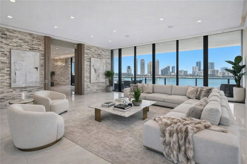 UPDATED!!! Wallpaper removed and a fresh coat of paint throughout. Welcome to Residence 803 at Prive, a luxury retreat on a private island. Spanning 8 lush, waterfront acres, and panoramic views. A stunning 3-bed, 4.5-bath flow-through residence, plus a dedicated staff room, boasts 2,750 sqft of meticulously designed living space & Miele appliances in the kitchen. Enjoy sweeping vistas of the ocean, Intracoastal, and city skyline w/2 expansive terraces, w/a summer kitchen. Enter through a private foyer into a residence with thoughtful design. Prive’s resort-style amenities include: 2 swimming pools, fitness center, a private restaurant, wine & cigar lounge, Spa, tennis court, 24-hour concierge & valet, private marina accommodating up to 150 ft vessels.