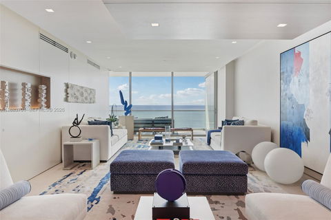 STUNNING one-of-a-kind 3BR/4.5BA residence, nearly fully customized by 'Fede Design' and featured in Miami Design Magazines. Soaring 10’ ceilings with floor-to-ceiling glass and expansive balconies frame breathtaking ocean & Intracoastal views. Gourmet “Dada” kitchen with 'Gaggenau' appliances, oversized 54" refrigerator,marble island and wine cellar.Custom “Ornare” closets highlight the designer finishes. All bedrooms feature ensuite baths, including a master suite with a custom electric drop-down TV screen. Customized doors with leather accents. Additional features include porcelain tile, spa-inspired marble baths, smart-home integration, motorized shades, a custom bar with ice maker, and laundry room. A truly unique residence with world-class amenities and steps from Bal Harbour Shops.Unit is now vacant with no furniture.