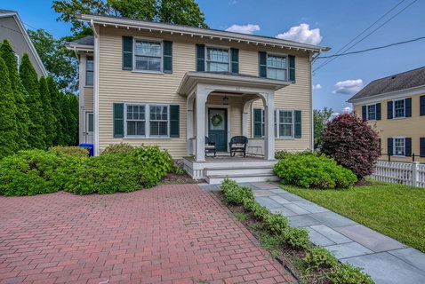 Stellar location in the heart of Bedford Center on beautiful Fletcher Rd! This chic, main level condo has been created from a building previously known as Ye Old Country Store. You'll be impressed with the quality of craftsmanship and high-end finishes throughout, starting with the Brazilian hardwood on the covered front porch. Inside, the exposed beams & a bedroom w/ original wood floors are the only relics of what was; now it's open concept living w/ tall ceilings, modern updates & upgraded everything! Gorgeous kitchen w/ new stove & a large island offers the perfect place to gather & it's open to the living room, with gleaming 4" live sawn white oak floors. Enjoy one-floor living here w/ 2 bedrooms, 2 bathrooms & laundry all on the main level! Beautiful tilework in both bathrooms including the private primary suite, which also has a walk-in closet. Built-ins grace the stairway leading to the lower level, w/ finished family room. Side patio too! Walk to the Minuteman Bike Way & more.