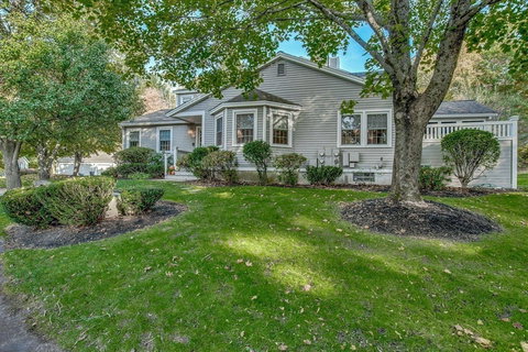 Quietly tucked away yet minutes to everything, this Shawsheen Ridge townhouse is a special offering! At the rear of the complex, with views over a private yard, this corner unit truly feels like single-family living! The layout is open & gracious with a very nice flow. The living room has a bay window & custom built-ins adjacent to the unique 2-sided gas fireplace. The dining room opens nicely into the kitchen. We love the huge granite peninsula, and can picture friends & family gathering here. Or enjoy some quiet time on the screened-in porch, offering great privacy & that much needed outdoor space that everyone is craving these days! A first-floor master suite is another important feature; and first-floor laundry means one floor living can be achieved here. Upstairs are two more bedrooms, a full bath & an office nook. The basement is HUGE & could easily be finished for more space. 2 garage spaces! Superb location, literally one minute from 95/128 & walk to shops/restaurants!