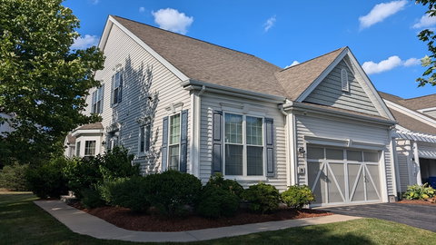 Excellent Location, Single-level living, a beautiful setting, and easy commuting make this condominium one of the most desirable in Bedford. Bright sunny spacious rooms cathedral ceilings, spacious living room and dining room, an Office and working kitchen and deck that maximizes entertainment. A walk-in closet for the master bedroom. A walk-in shower and Jacuzzi in the Master bathroom. Second floor two bedrooms with Full bath and loft area for multipurpose use. Finish basement with Theater with surround sound system and Bar and half bath perfect for man cave. Two Car Garage with automatic garage door opener Easy access to major highways, convenient to markets, shopping. Comfortable, carefree living in a wonderful community setting. An end unit so you have extra windows and extra light!!!
